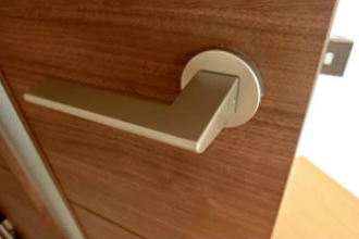 ドアの取っ手が握り玉の場合、握力が無くなってくると握れなくなり取っ手が回せなくなりますので、レバーハンドルに変えておくと良いでしょう。同じように水洗金具もレバー式のものを付けておくと便利です。室内ドアは、できる限り開き扉ではなく引き戸にするようにしましょう。車椅子では開き戸は開けにくいですし、開口幅も引き戸のほうが広くとれますので、通り抜けし易くなります。最近では3枚引き戸で2枚分開くタイプの商品もありますので、リフォームの際それを利用すると良いでしょう。