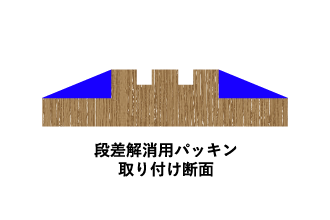 ドアの下枠や敷居のでっぱりは思ったより危険なものです。小さな段差はつまづきやすく、車椅子の移動にも邪魔になります。簡単な方法としては、段差の両側に三角形の断面をした段差解消用パッキンを取り付ける方法です。これまでは木で段差に合わせて製作していましたが、今では簡単に取り付けができるゴム製の商品があります。